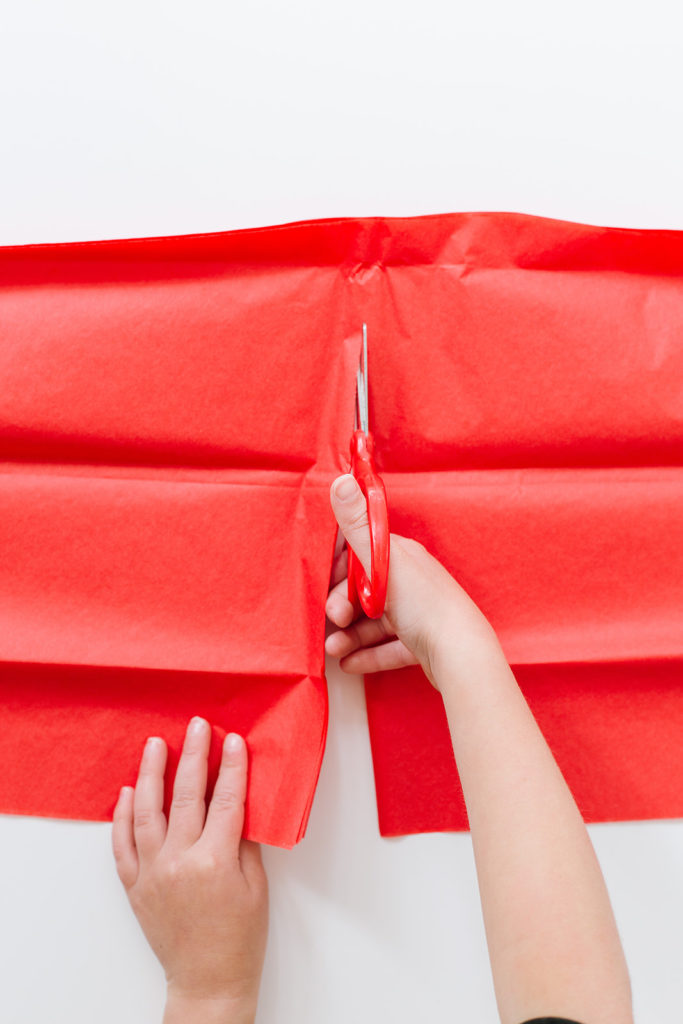 Cut your tissue paper into about 10 inch squares. You will want 2-3 layers of whatever color you are working with.