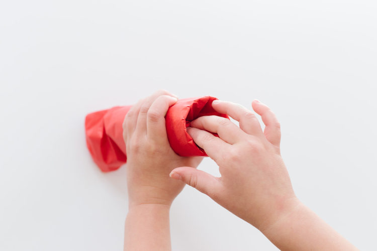 To close your tube, wrap a full length pipe cleaner around the top of the tissue paper and twist tightly. Make the pipe cleaner curly by wrapping it around a pencil. We also fashioned a star popping out of the top.