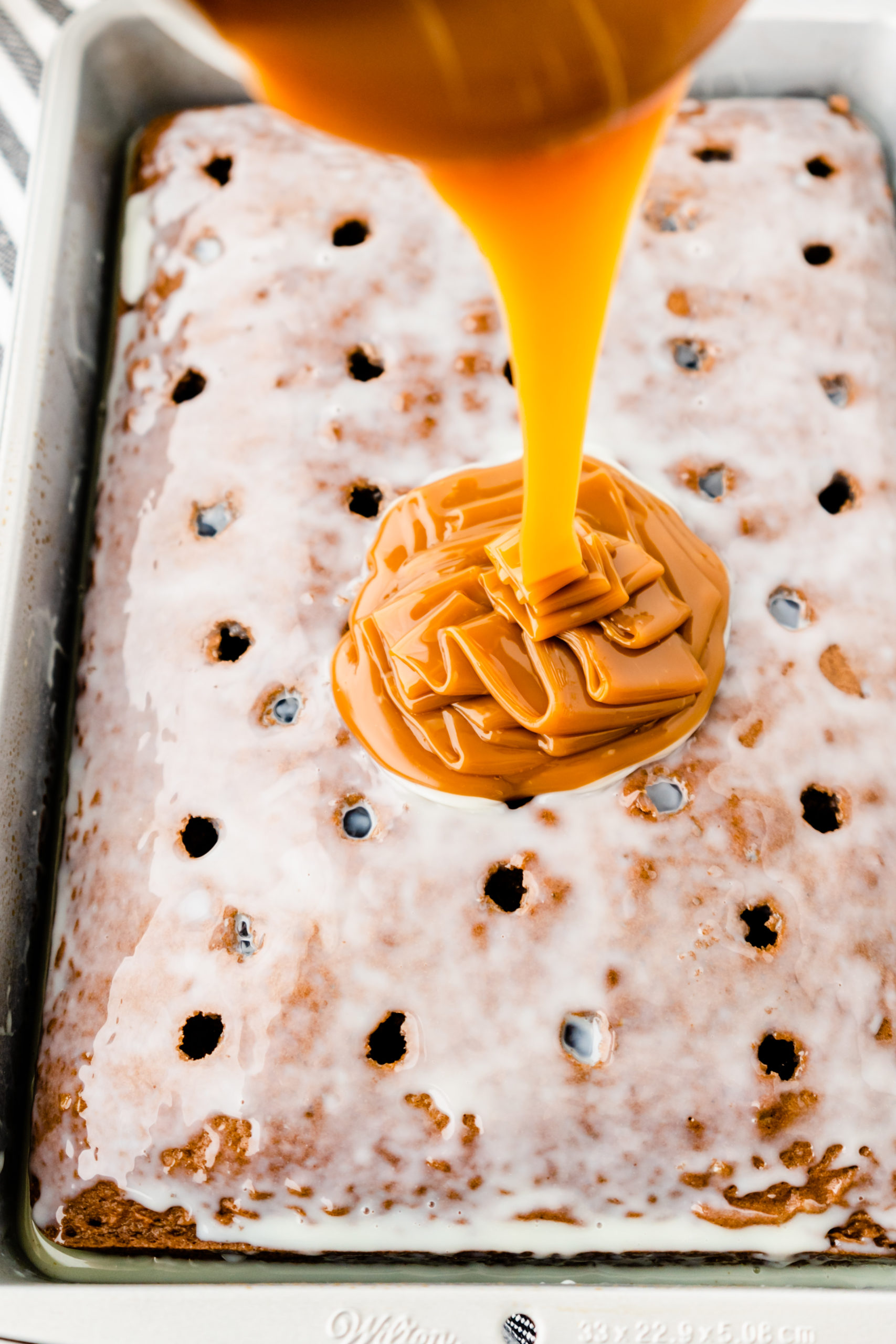 • Drizzle sweetened condensed milk evenly over cake.