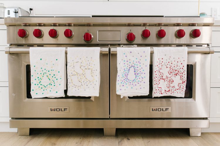 We’ve got a great craft today that is easy enough for even the littlest of hands. This Christmas Kitchen Towel Craft is also good to have your grandkids make and then give to mom for Christmas. My grandkids love to have a little something to give to mom for her birthday, Mother’s Day and Christmas.