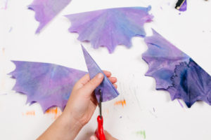 - Flatten coffee filters out and then draw patterns with the blue, black, and purple washable markers.