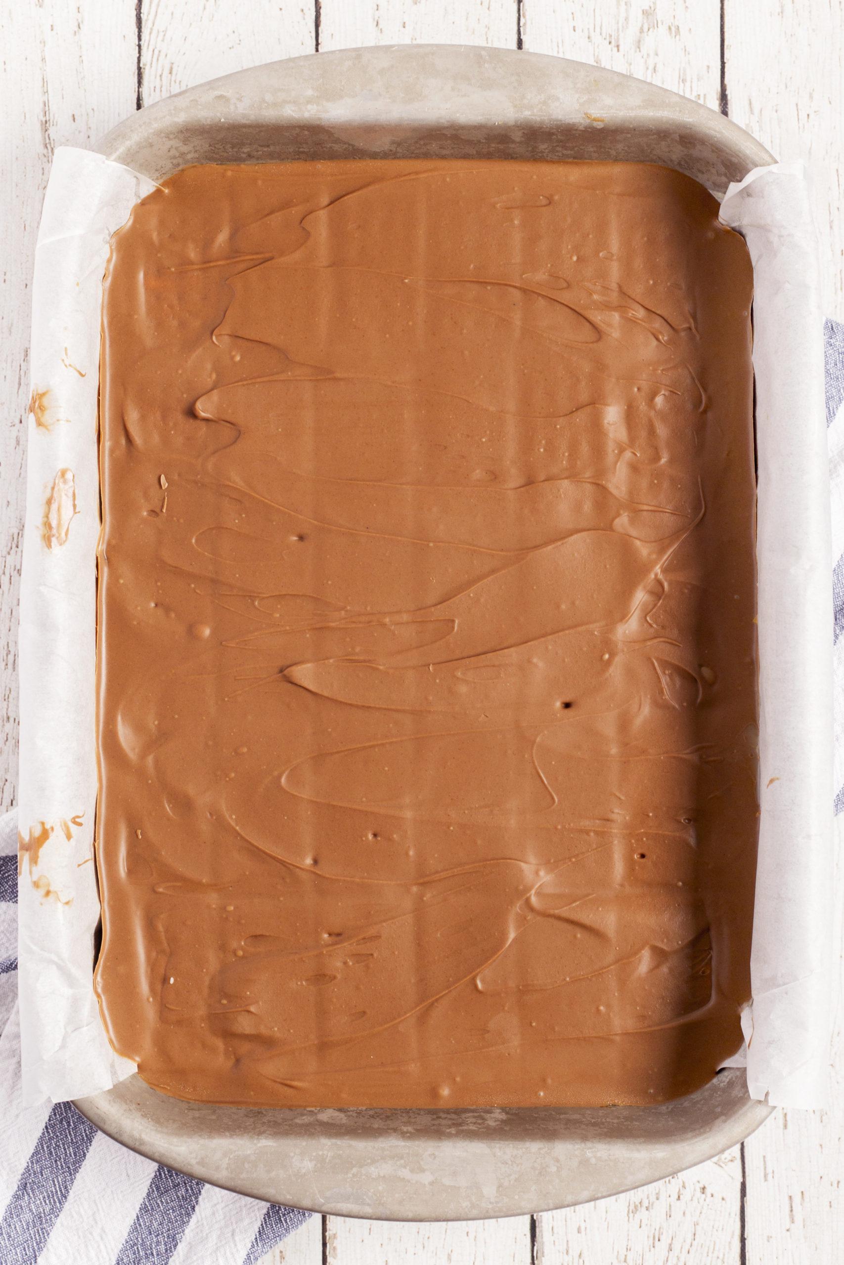 Pour half of this mixture over the crackers then smooth to cover crackers.