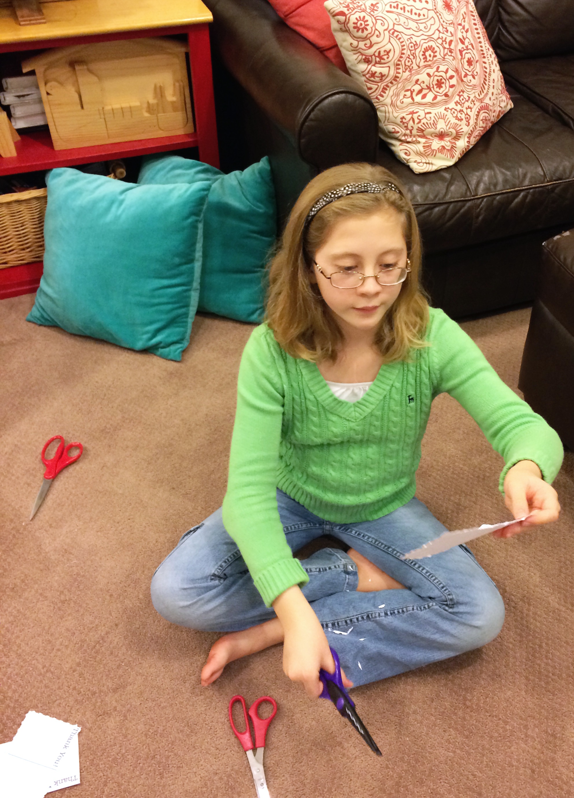 Our little helpers went the extra mile by pulling out craft scissors to cut their postcards so that they would have decorative edges. Nice!