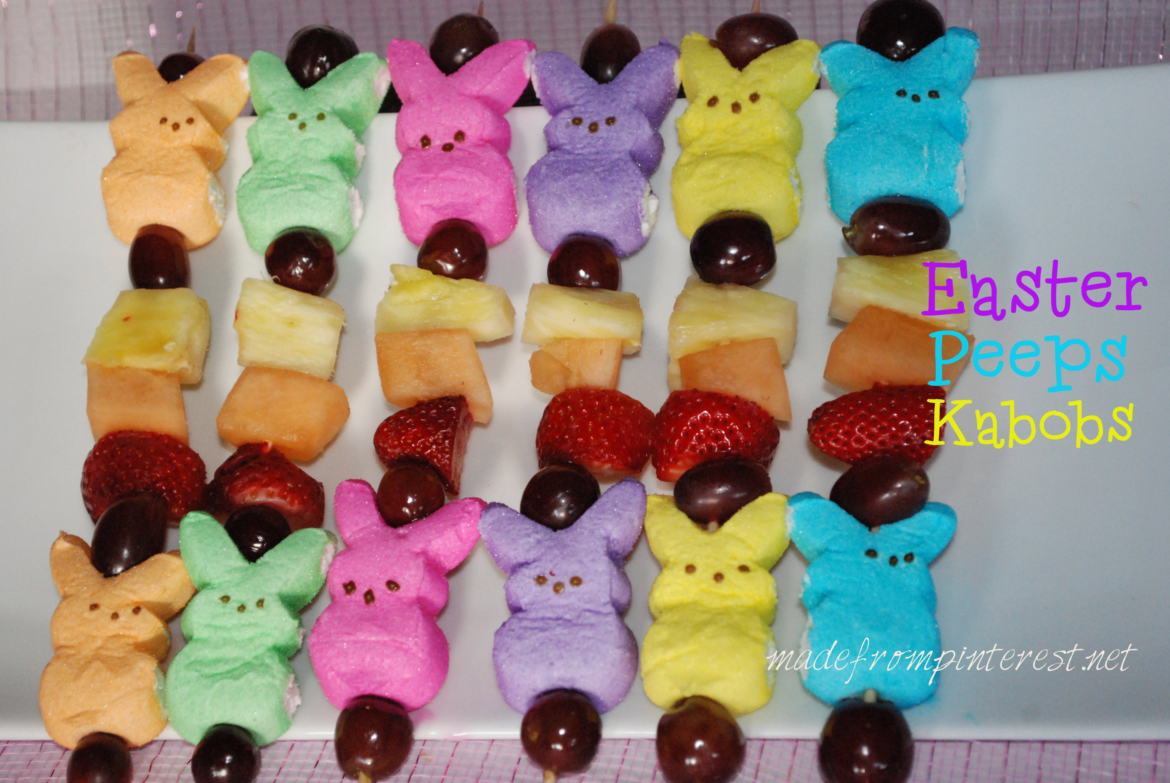 - Simply poke fruit and Peeps Bunnies onto your skewers in any pattern that suits your fancy.