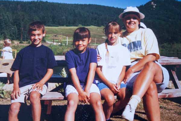 I wish that I had taken way more pictures of myself during that time, but I only have two and I treasure them both.  While going through this experience I didn’t want pictures taken of me without my hair but now I wish I had more to document that time in my life.  Here I am with my three littles.  My hair is completely gone in this picture and if you look closely under the white brim of the hat, you can see the scarf that I used to wear.  I never wore a wig.  It was much too hot, itchy and slippery!