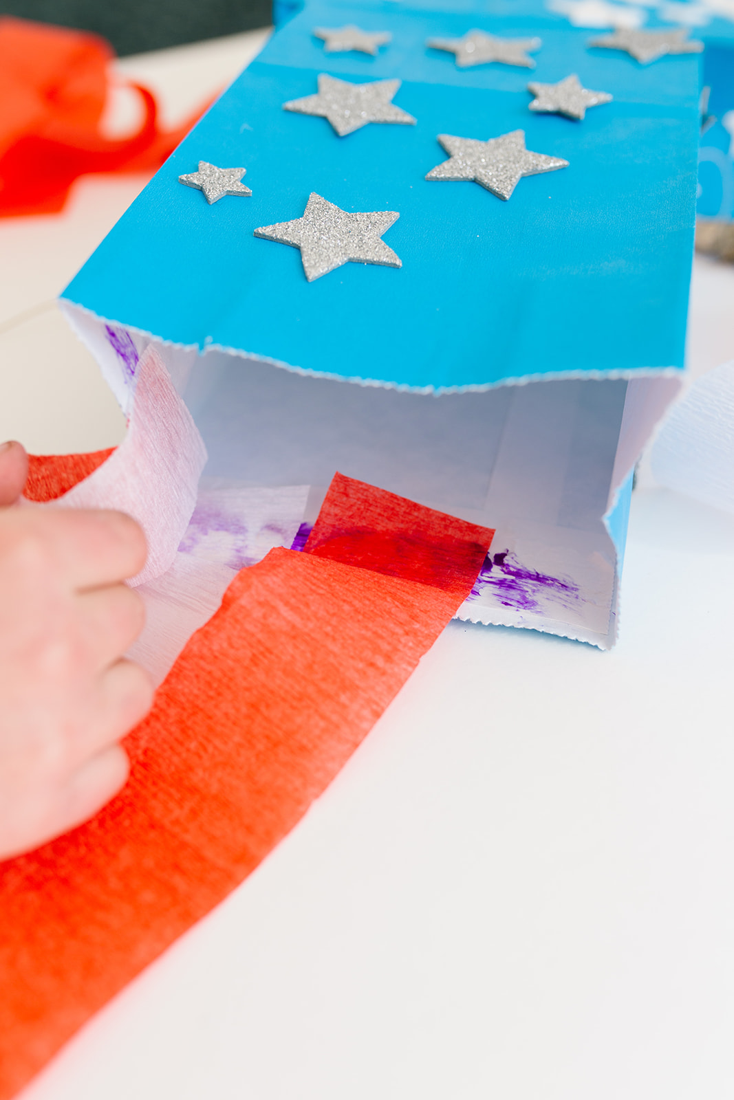 If you don’t have any wind these might not get a good enough lift but not to fear. The kids had a blast running and swinging them around anyway! Which makes this Paper Bag Flag Kite a huge success!