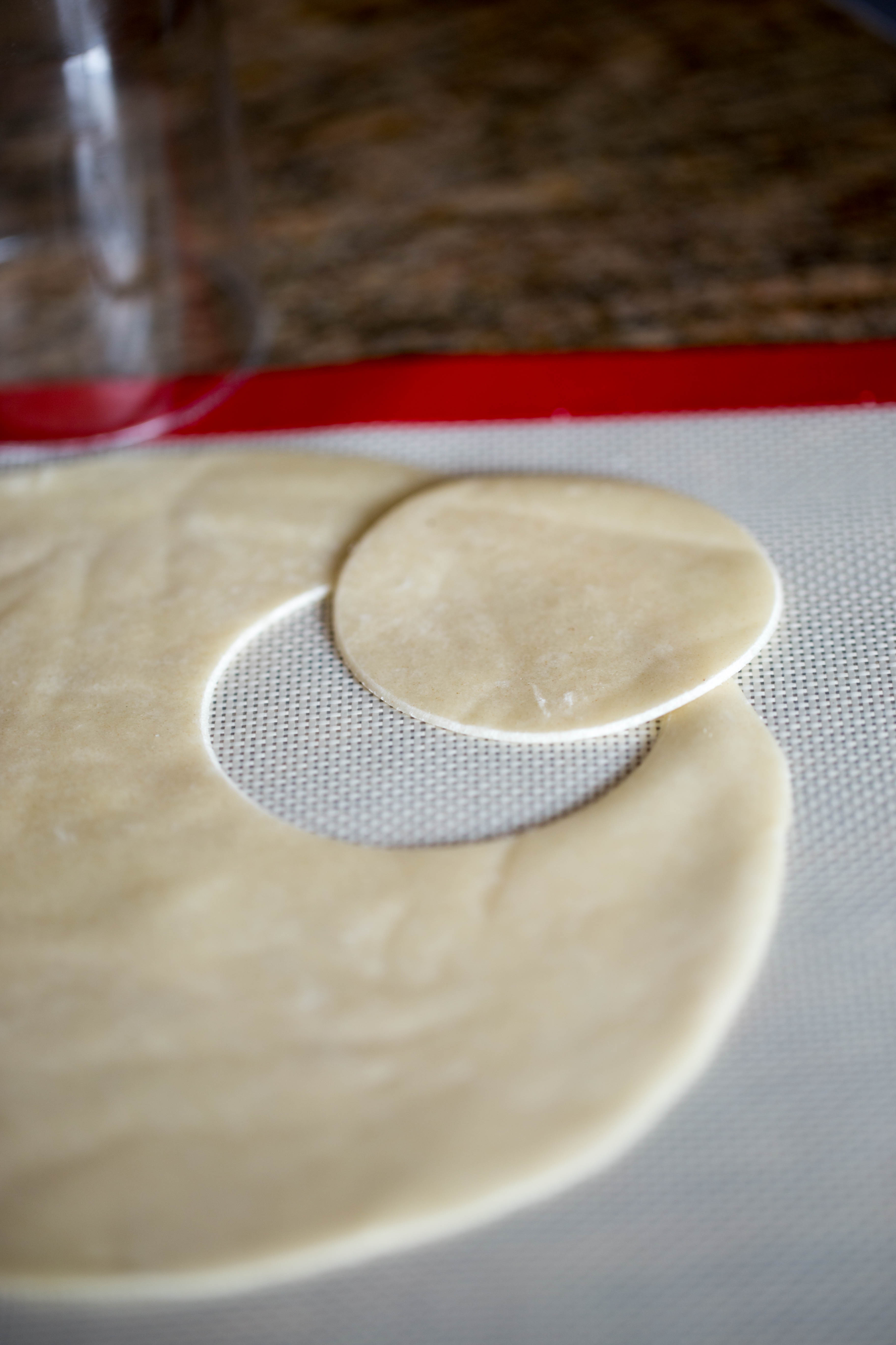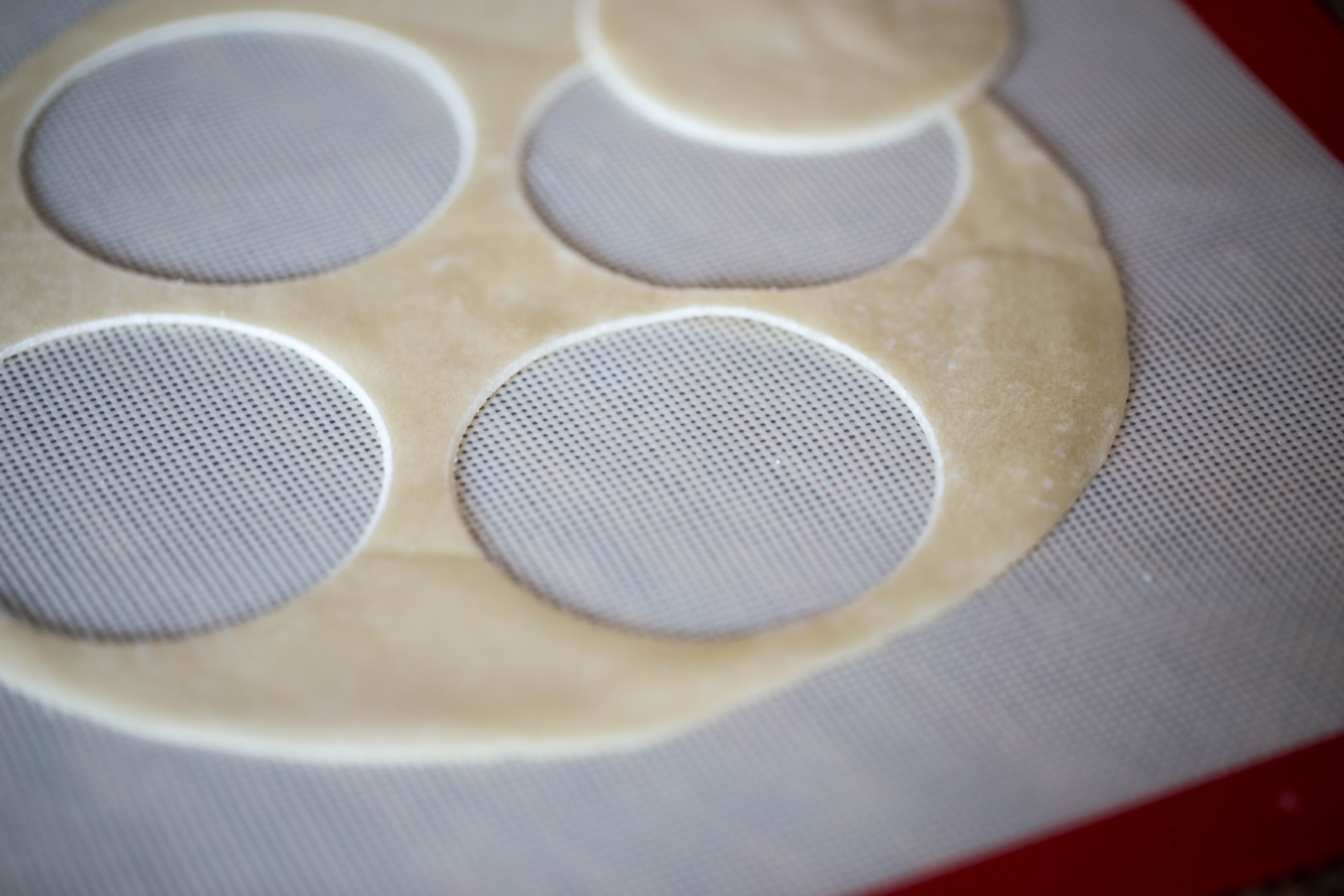 With a biscuit cutter or a glass (mine is inches in diameter) cut out your circles from your TortillaLand tortillas.  I got about 4 small circles out of one tortilla.