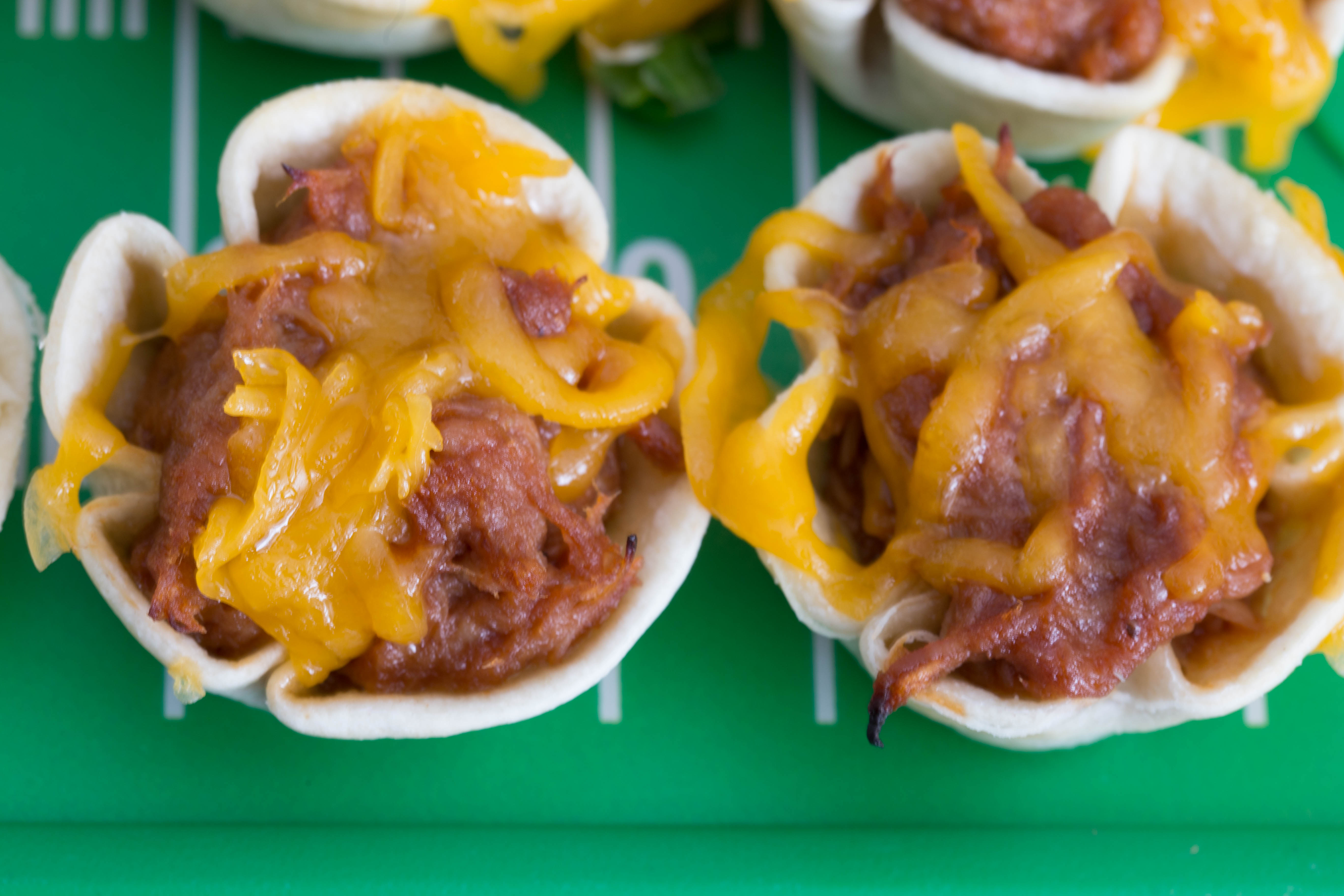Sprinkle some grated cheddar cheese over the BBQ pork cups right when these come out of the oven and the cheese will melt nicely.