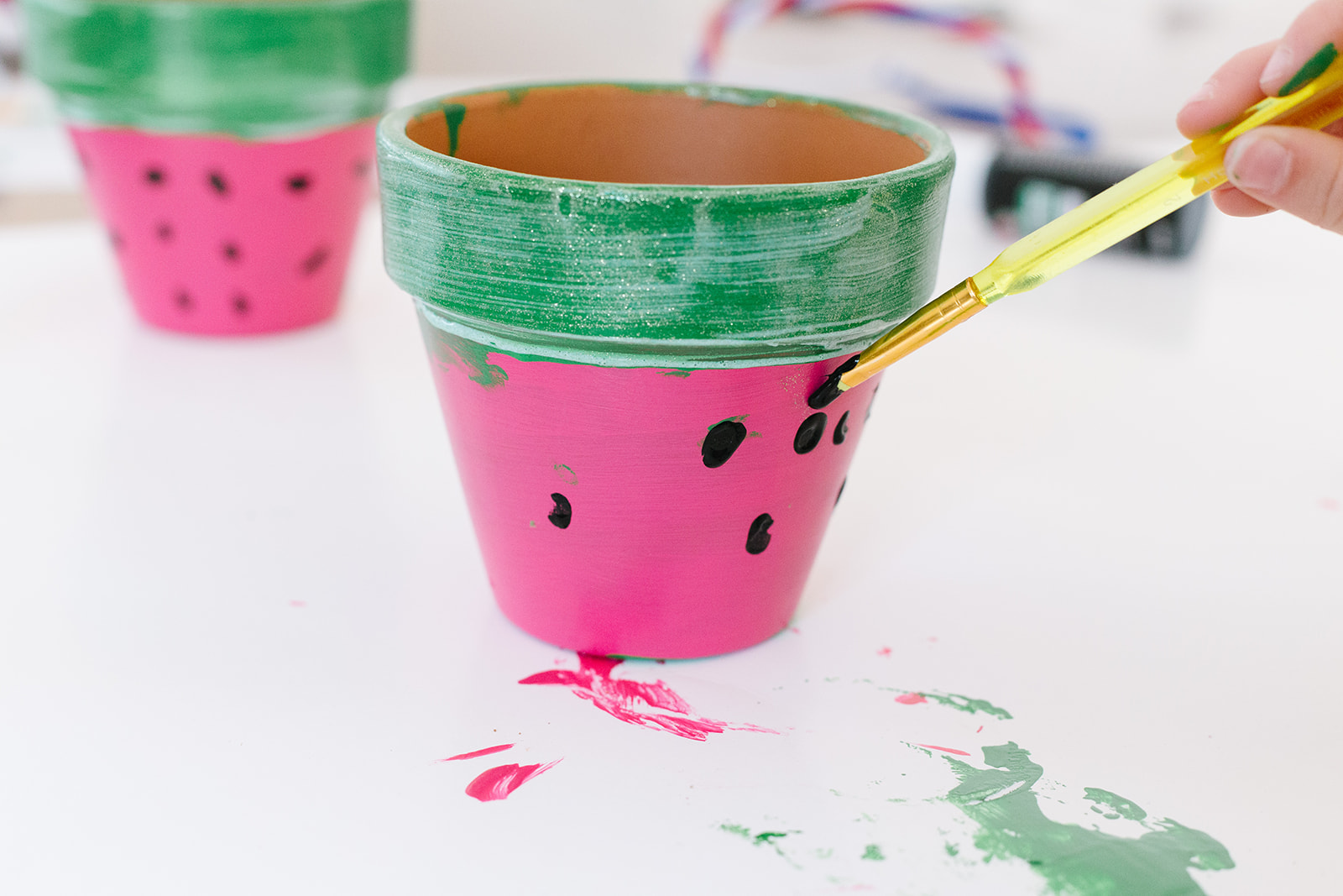 Paint the rim of your pot with the Kelly green paint and let dry again.
